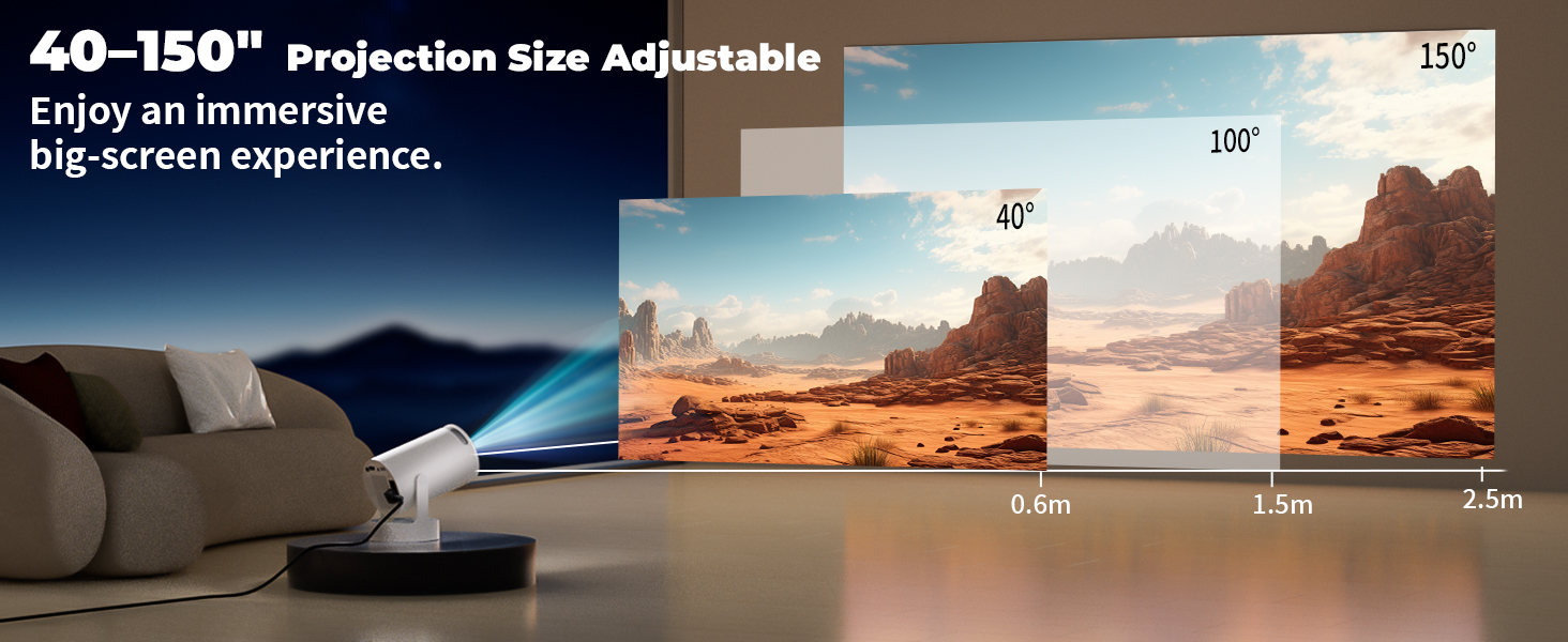 SIMPLE SETUP & PRECISE ADJUSTMENT: The portable projector includes manual focus, auto keystone correction, and horizontal alignment up to ±15°, ensuring sharp images on screens from 40" to 150". Enjoy quick setup and effortless customization in any viewing space.