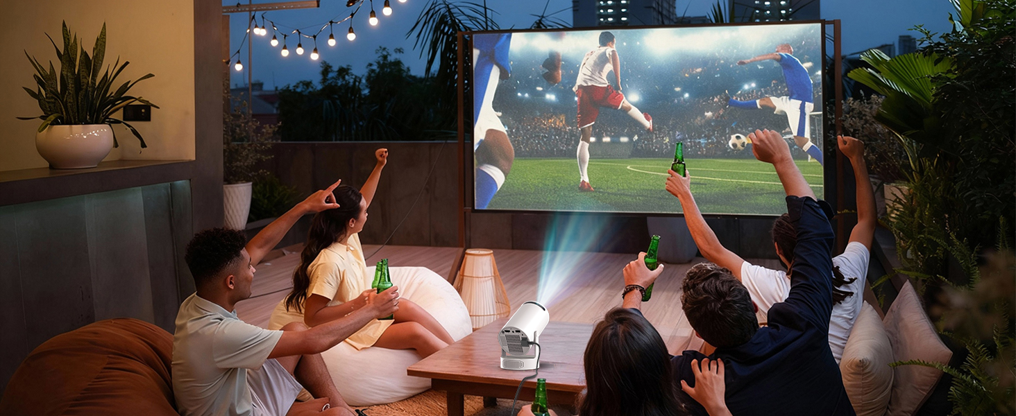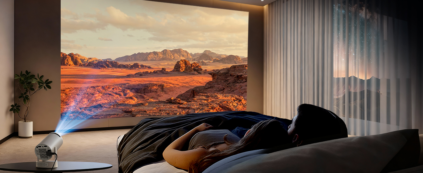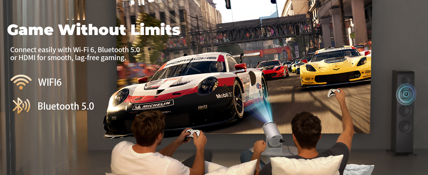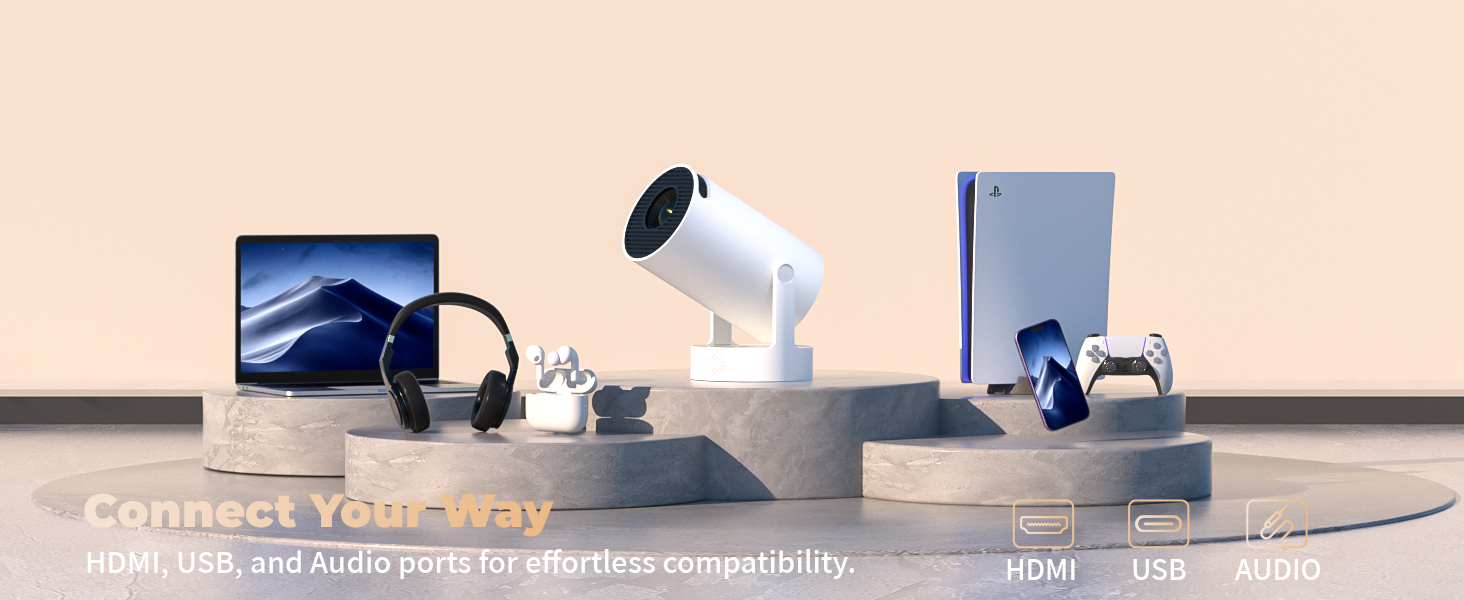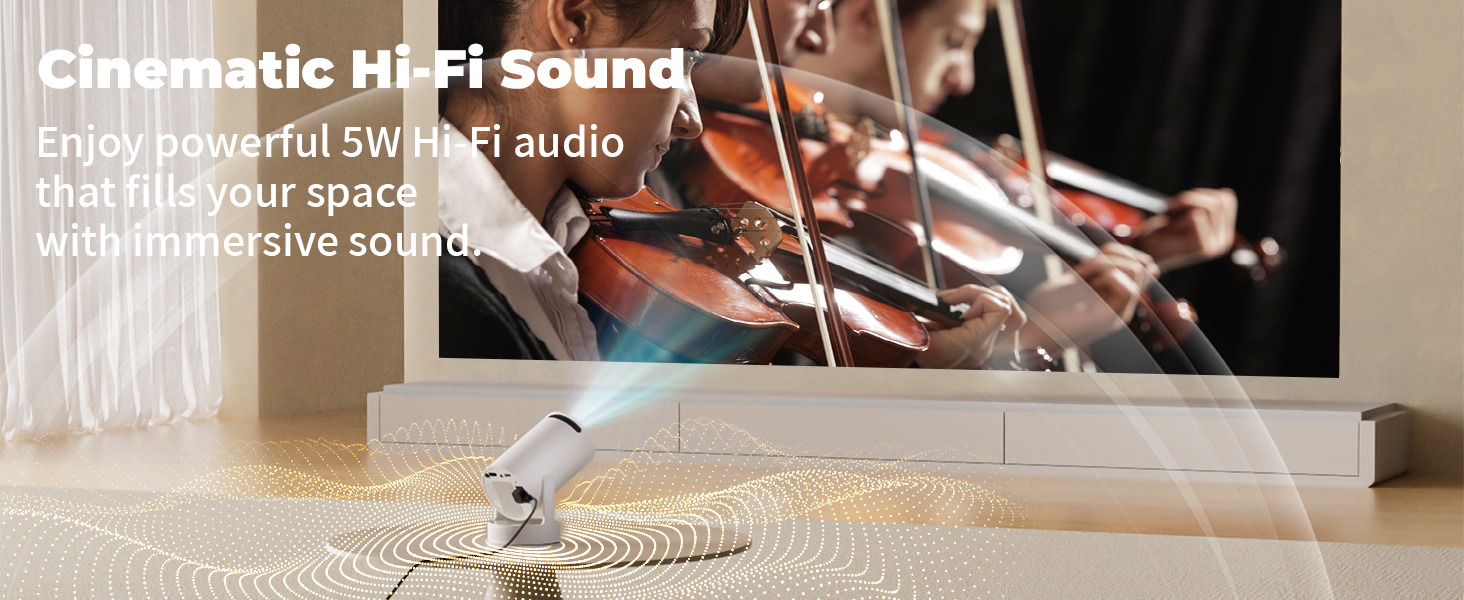 ROOM-FILLING AUDIO PERFORMANCE: Built-in HiFi speakers deliver balanced sound for an immersive viewing experience. Whether used as a projector for bedroom or in your living area, you can enjoy clear and rich audio without needing extra equipment.