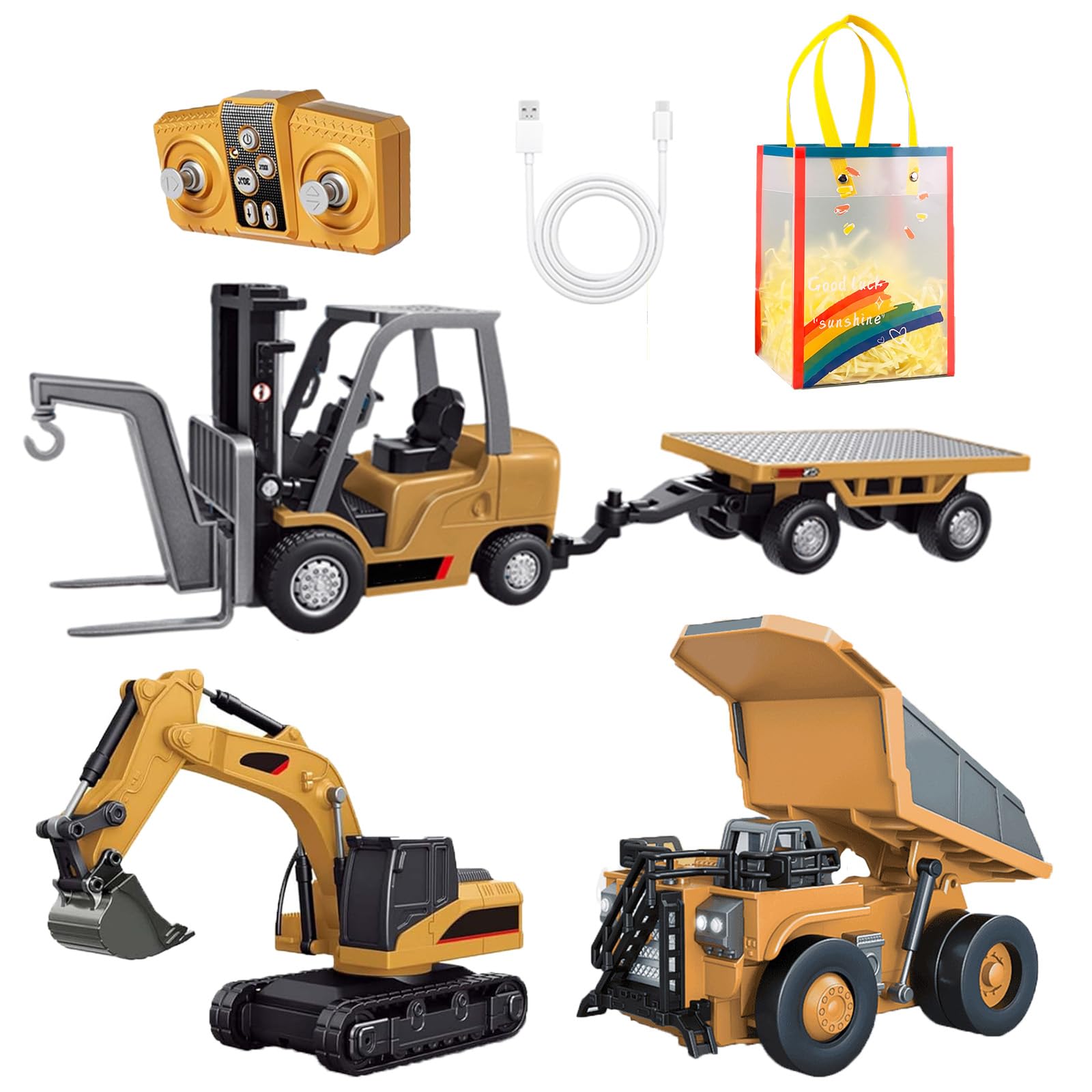 Mini RC Construction Vehicles, Mini Remote Control Construction Vehicles, Rechargeable Remote-Control Construction Set (Forklift + Trailer + Excavator + Dump Truck)