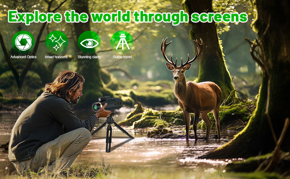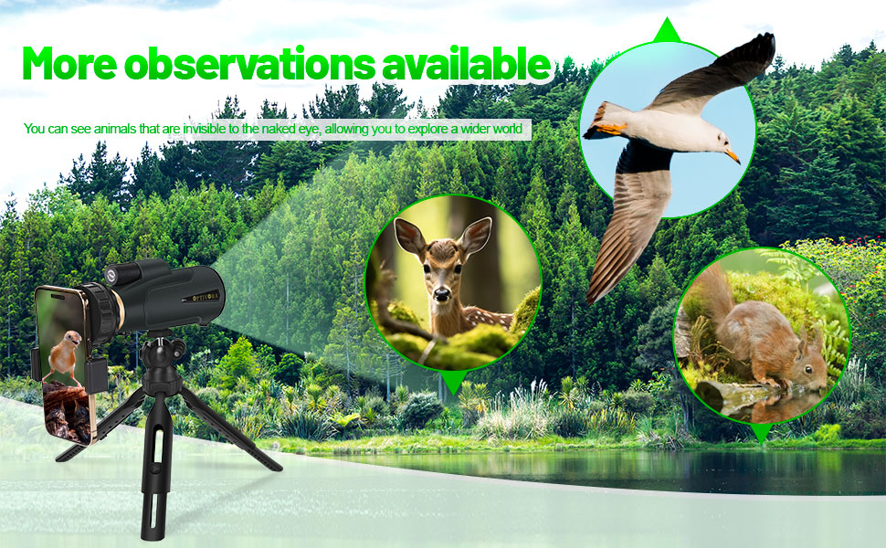 - [Portable Design] This monocular telescope is compact and lightweight,installing the matching tripod and smartphone holder can be more convenient to record the outdoor scenery,there is also a mini telescope carrying bag in the package,you can put the monocular in the bag when you are hiking.If you have family members and partners who like outdoor sports around you,this monocular will be a very suitable gift.