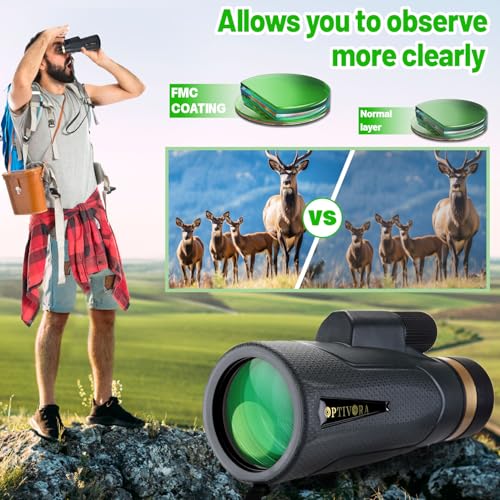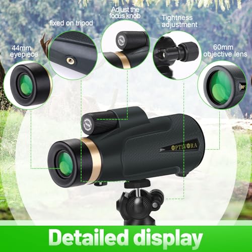 - [High Quality Materials] Monoculars for adults high power are made with using advanced FMC coating and BAK4 prisms with a large 60MM objective lens,which can effectively reduce the loss of light,so you can see a brighter and clearer picture through the mini telescope,and use with the smartphone holder in the package allows you to record the beautiful scenery you see.