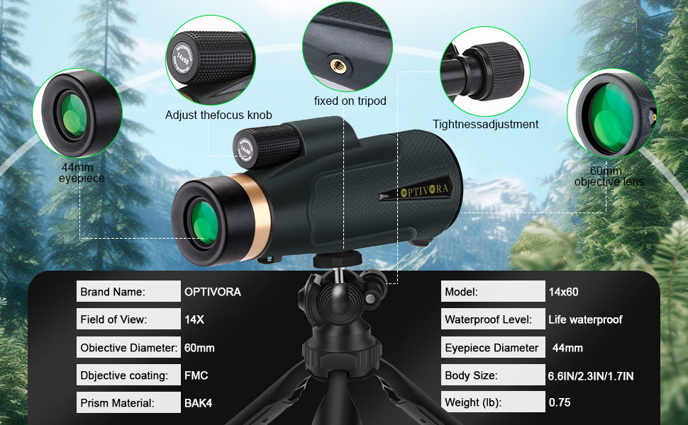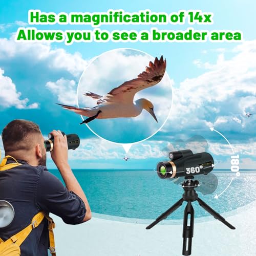 - [Optical Performance]Monoculars for adults high power has 14x and 60mm objective lens,which allows you to observe objects farther away through the monocular,the monoculars for adults is perfect for use as a monocular bird watching,beginner telescope or stargazing monocular.