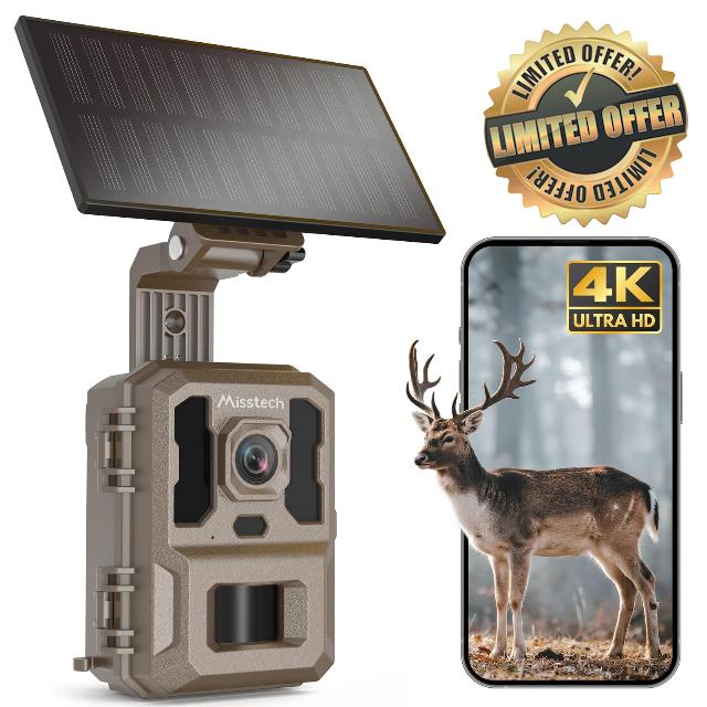 Misstech 4K UHD Trail Camera Solar-Powered, 64MP Wildlife