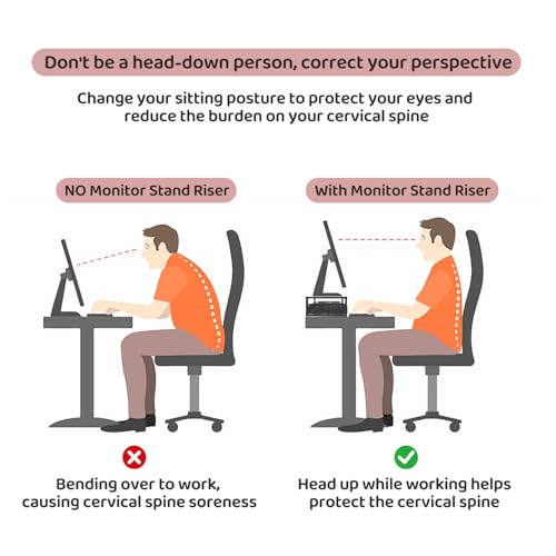 【Ergonomic Design】: Raise the monitor to eye level for a comfortable ergonomic viewing experience, relieving stress on your neck, shoulders and back, Protect your body.Ideal for strengthening office organization and increasing comfort levels