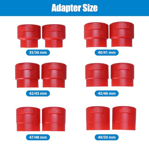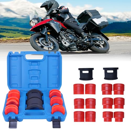 EASY TO USE:Our motorbike tool kit is easy to use and install, eliminating the need for tape when installing the seal. Simply select the appropriate adapter, attach the seal to the tool, and slide the tool over the seal until it's securely in place. UNIVERSAL SIZES:Our motorcycle tool kit comes with a high-quality plastic adapter that fits most conventional and inverted forks. Adapter sizes include 35/36mm, 40/41mm, 42/43mm, 45/46mm, 47/48mm, and 49/50mm.