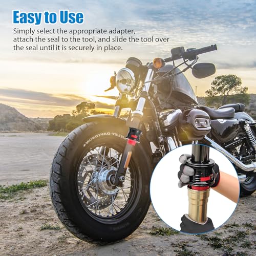 EASY TO USE:Our motorbike tool kit is easy to use and install, eliminating the need for tape when installing the seal. Simply select the appropriate adapter, attach the seal to the tool, and slide the tool over the seal until it's securely in place.