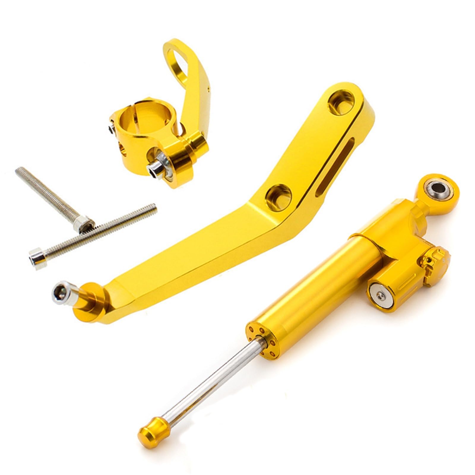 Material :Aluminum Item name:Steering Damper Stabilizer Package Included:1 x Set of Motorcycle Adjustable Steering Damper Stabilizer Bracket Holder featrues: easy to install Position on Bike: top mount Please confirm when placing your order that this product is suitable for your motorcycle Function: eliminate head shake, improve lap time For Note: Please confirm whether your motorcycle is suitable for our products before ordering.
