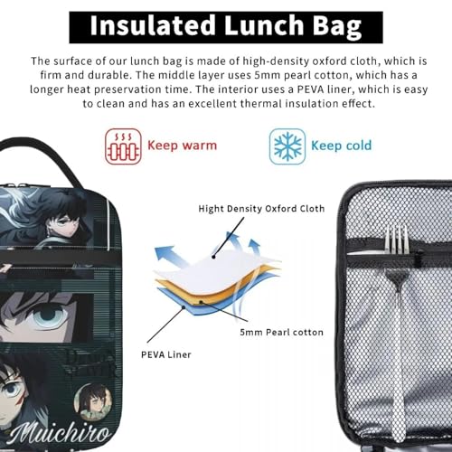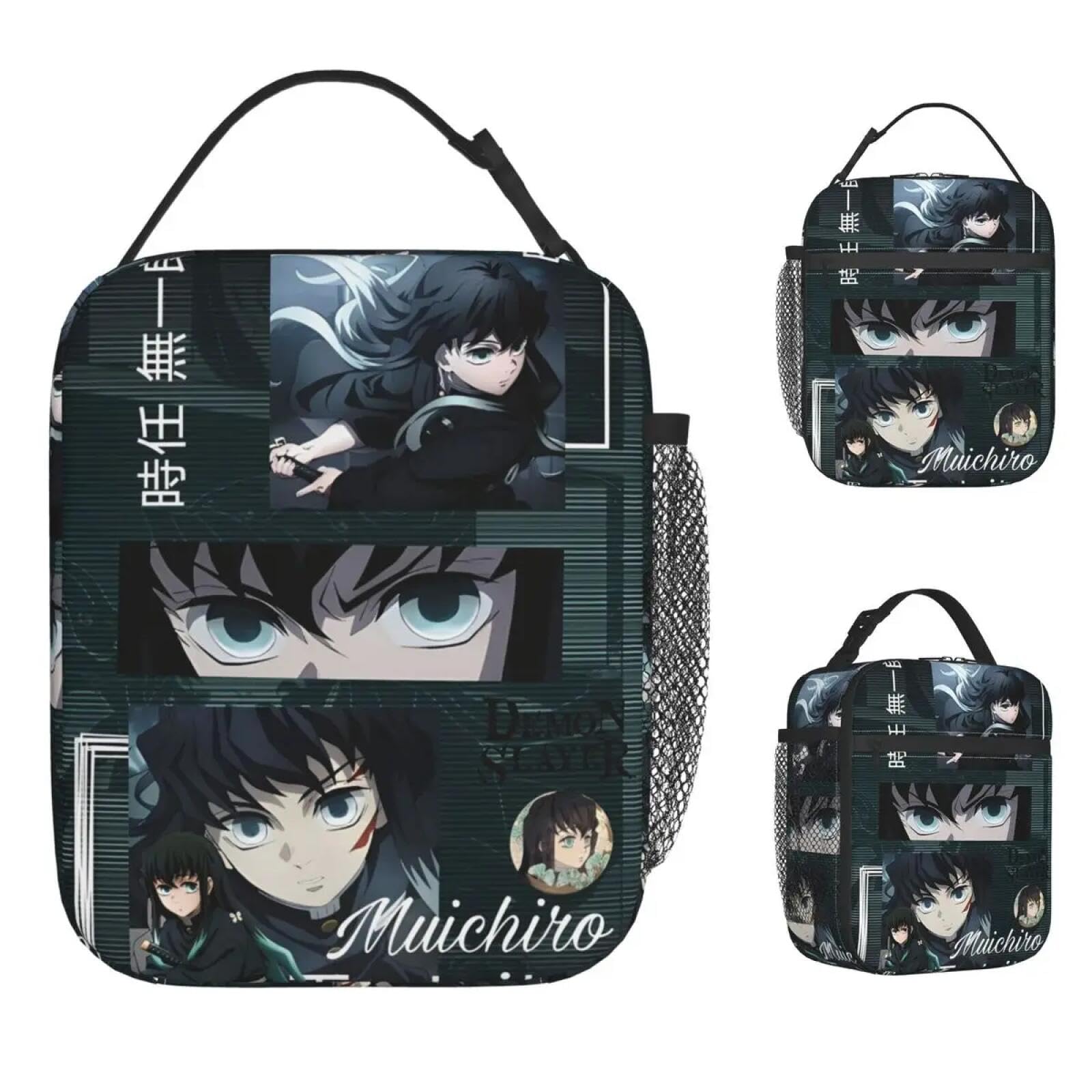 Muichiro Tokito Lunch Bag Retro Lunch Box for Child Travel Portable Cooler Bag Oxford Print Thermal Lunch Bags
