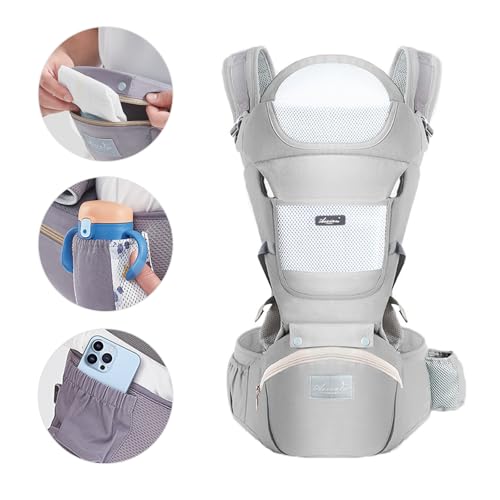 - Premium Comfort for Baby & Parent: Crafted from high-quality, breathable, and skin-friendly polyester fabric, this carrier is soft and suitable for all seasons. The padded shoulder straps and waist belt provide superior comfort, while the 3D memory foam hip seat offers secure and non-slip support for your baby.