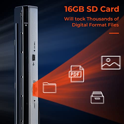 MUNBYN Portable Scanner, Photo Scanner for A4 Documents Pictures Pages Texts in 900 DPI, Flat Scanning, Include 16G SD Card, Wand Document Reader Uploads Images to Computer Via USB Cable, No Drive