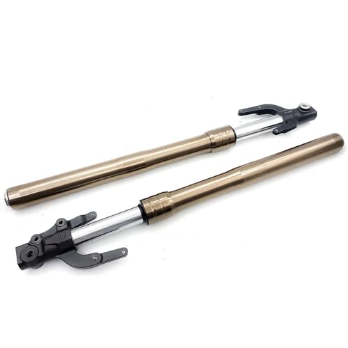 Discover the original front shock absorbers designed specifically for the Super SoCo TC Max, an essential component to ensure optimal performance of your electric motorcycle. These high quality shock absorbers are made from premium materials, featuring a stylish champagne coating and polished aluminium components. The front fork has been designed to provide exceptional stability and driving comfort, effectively absorbing road irregularities. The mounting system has been optimized for perfect compatibility with the TC Max model, ensuring a precise and secure installation. The shock absorbers feature a sturdy construction with high quality black steel fasteners and a telescopic construction that ensures a smooth and controlled response. These components are key to maintaining optimal control of the vehicle and ensuring a comfortable ride in different road conditions. Their durability and reliable performance make them an essential investment in the maintenance of your Super SoCo TC Max.