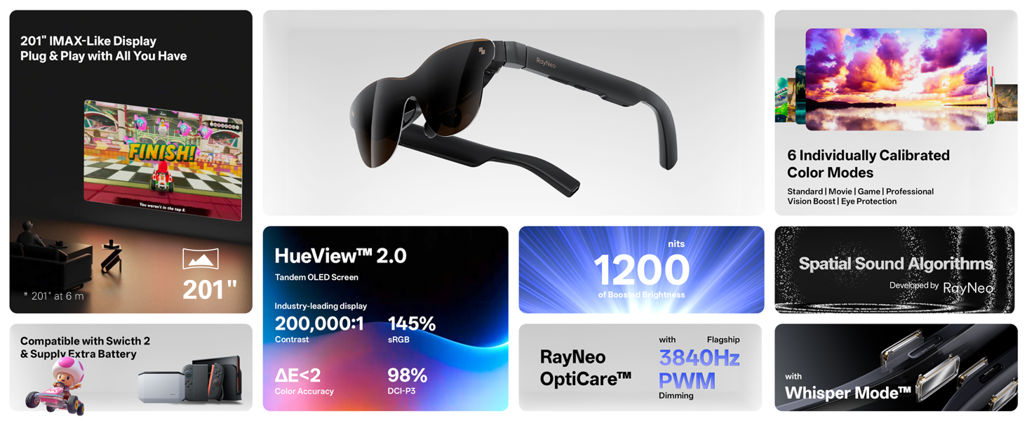 [New] RayNeo Air 3s Pro AR/XR Glasses – 201'' 1200