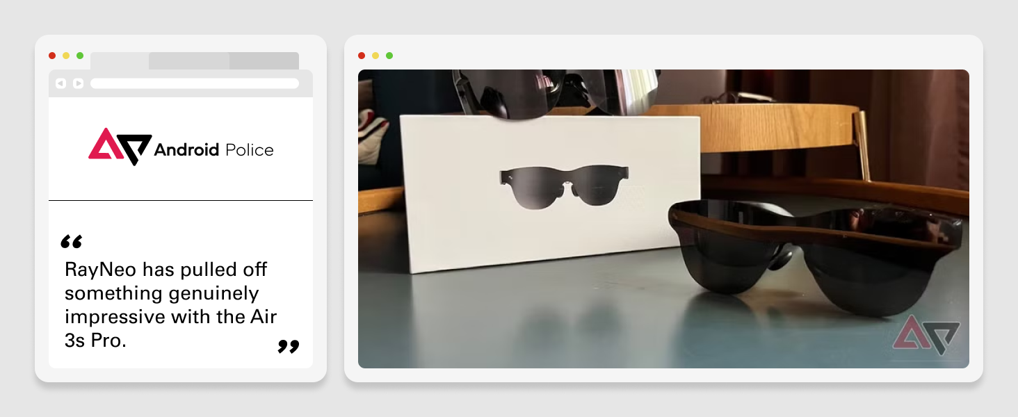 - [Larger EyeBox, Clearer Image] Large 14×7 mm EyeBox keeps images sharp for 93% of users without constant adjustment. Air 3s Pro is engineered with full compatibility for prescription lenses, readily accommodating both near-sighted and far-sighted users.