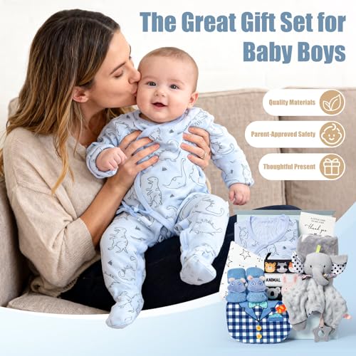 Newborn Baby Gifts Hamper Set with Gift Box Blanket Onesie Security Blanket Socks Hat Bibs Cards, New Born Essentials Baby Shower Gifts Boys Girls Unisex