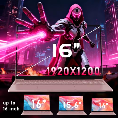 Newest 16-inch Laptop 13th Gen N150 up to 3.6GHz, Cheap Gaming Laptop Computer 16GB RAM, 1TB SSD, Win 11 Pro, 1920x1200P, 6000mAh, Backlit keyboard-Rose Gold