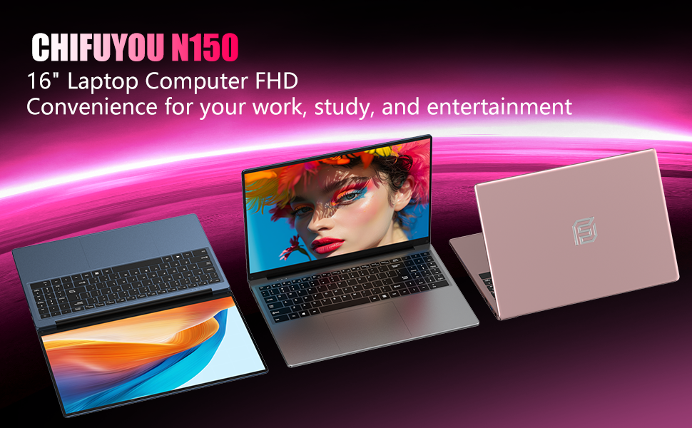 - 【16-inch Full HD Display】The CHIFUYOU laptop features a 16-inch Full HD screen with a resolution of 1920×1200. Boasting a 16:10 golden ratio and ultra-narrow 4mm bezels, it achieves a screen-to-body ratio of 90% for an immersive visual experience. Text appears crisp and sharp, while images showcase rich detail. Whether for audiovisual entertainment, competitive gaming, video editing, or content creation, it delivers an outstanding visual experience. An integrated 0.3-megapixel HD camera at the top of the screen allows you to initiate video calls with friends and family at any time.