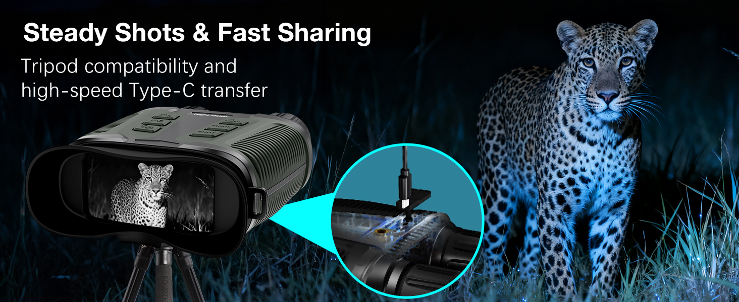 - Outdoor-Ready Design – With IP54 protection, tripod mount, and Type-C connection for charging and file transfer, these night-vision goggles are suitable for camping, hiking, wildlife watching, and security observation.