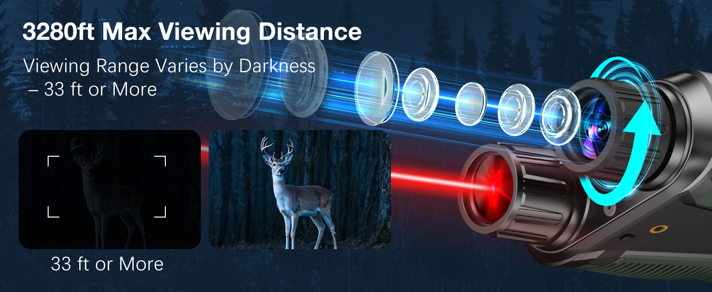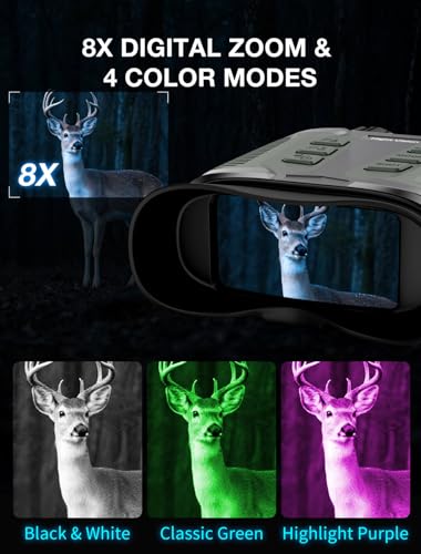 - Full-Color Night Vision up to 1000m– Equipped with an F/0.8 large aperture, these digital night vision binoculars deliver clear full-color viewing in low-light conditions, making them reliable night vision goggles for adults and kids.