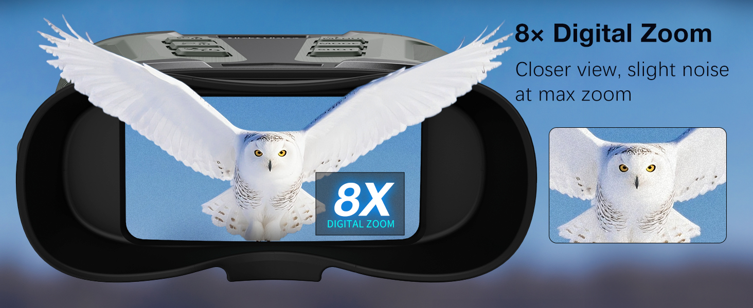 - 8X Digital Zoom & Manual Focus – Adjust magnification up to 8X and fine-tune focus manually for sharper details. These infrared binoculars bring distant scenes closer with precision.