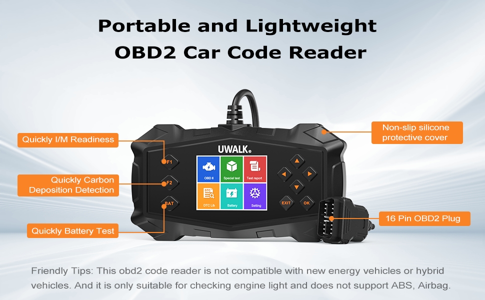 - Friendly Tips: car fault code reader comes with a detailed user manual and quick start guide for your ease of use. Please refer the manual before use. This obd2 code reader is not compatible with new energy vehicles or hybrid vehicles. And it is only suitable for checking engine light and does not support ABS, Airbag.
