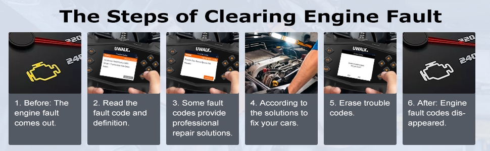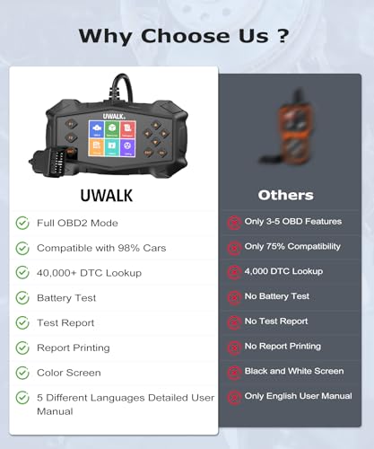 Over 40,000 DTCs: The UWALK auto code reader integrates over 40,000 DTCs, while older OBD2 code readers only have between 4,000 and 10,000 DTCs. This allows you to easily and accurately read and clear engine fault codes. This means that this OBD scanner can better help you diagnose and fix problems with your vehicle.