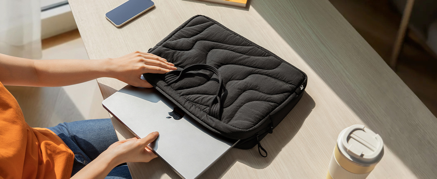 A Gentle Home for Your Laptop: Designed as a protective laptop case, the plush, padded interior hugs your device with care. Soft-touch materials inside and out provide both impact resistance and a cozy, reassuring feel every time you carry it: Laptop Size: 12.8" x 9.65", Fits up to 14-inch MacBook Pro M5 2025, other 14" Computers