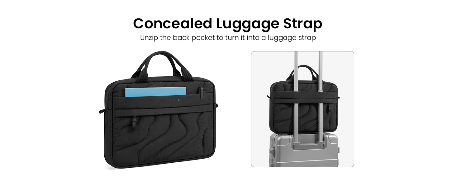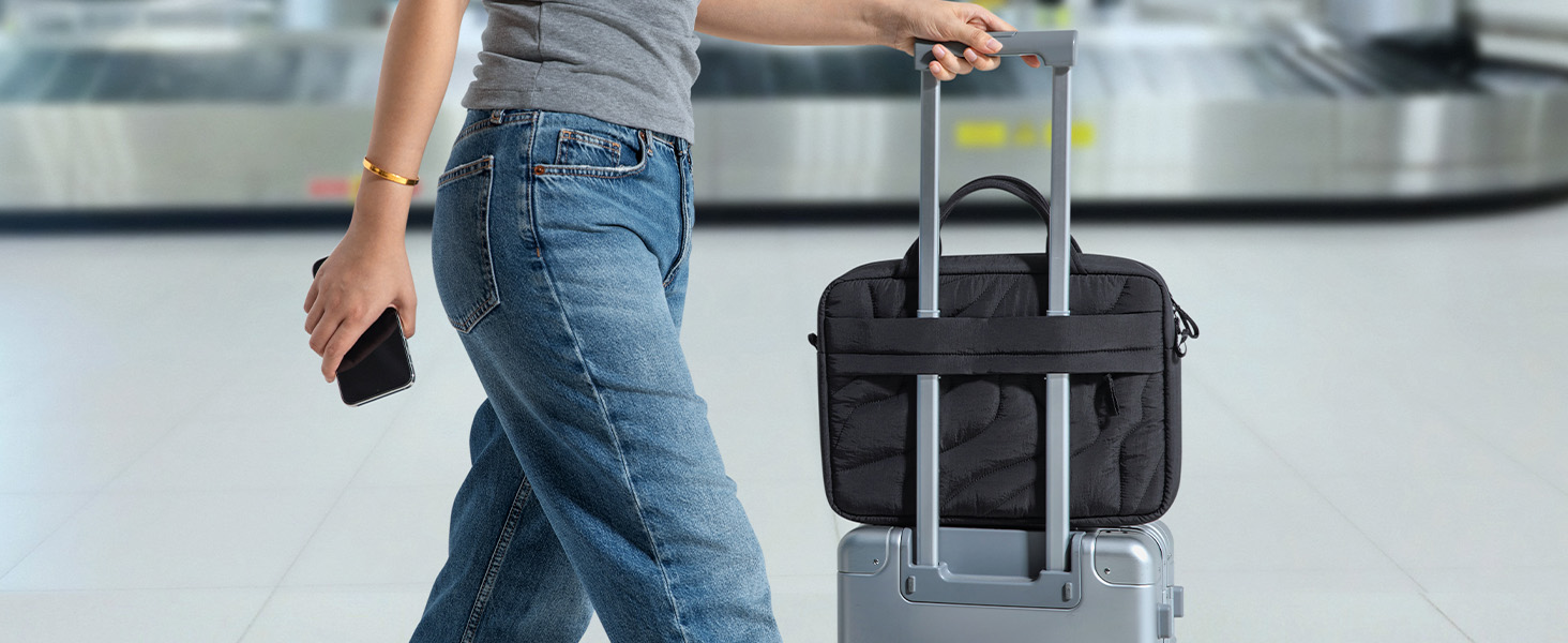 Lightweight Comfort, Versatile Carry: Featherlight yet structured, this laptop carrying bag won’t weigh you down. The cushioned handle strap and versatile options—from hand-held to suitcase-mounted—adapt effortlessly to any lifestyle or travel plan