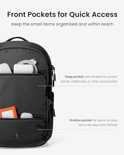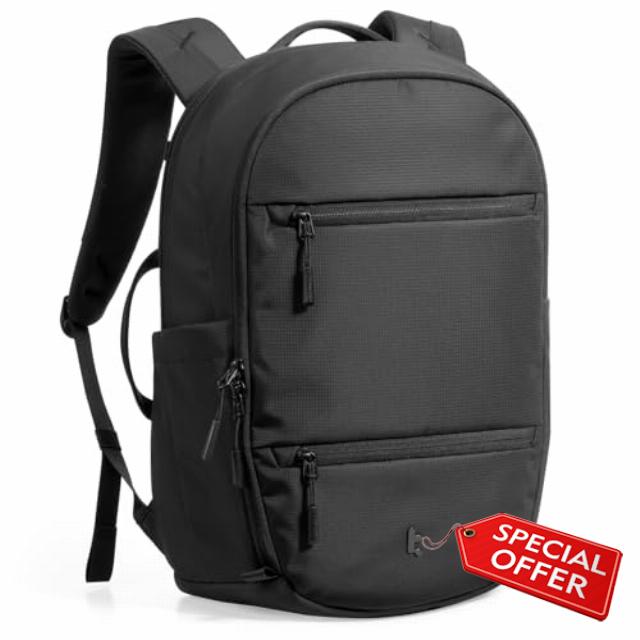 22L Smart Organization: With a 22L capacity, this backpack provides ample storage without the bulk. Two front accessory pockets neatly organize small essentials, while an inner mesh pocket for private items. Dual side pockets hold a water bottle or umbrella, and a dedicated tech zone offers padded sleeves for both a 16" laptop and a 13" tablet, ensuring safe carry for all your devices