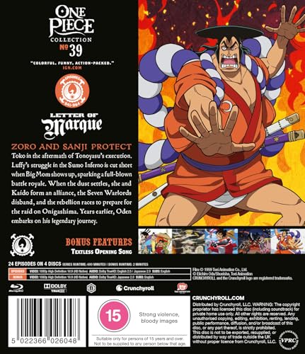 Zoro and Sanji protect Toko in the aftermath of Tonoyasu’s execution. Luffy’s struggle in the Sumo Inferno is cut short when Big Mom shows up, sparking a full-blown battle royale. When the dust settles, she and Kaido form an alliance, the Seven Warlords disband, and the rebellion races to prepare for the raid on Onigashima. Years earlier, Oden embarks on his legendary journey.