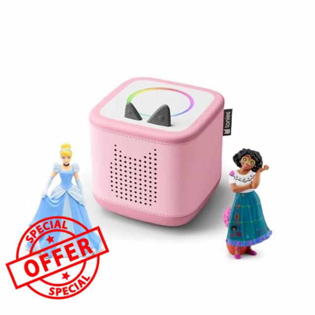 As well as the two Disney Tonies, this Toniebox 2 bundle also includes a Cloud Pink Toniebox 2 and all charging equipment.