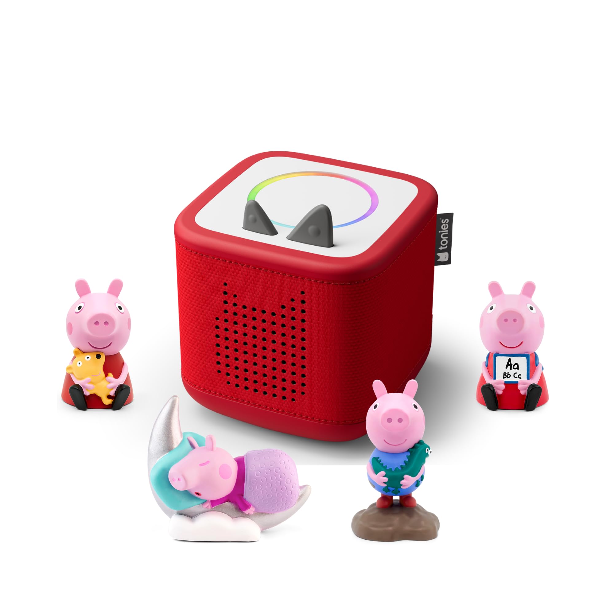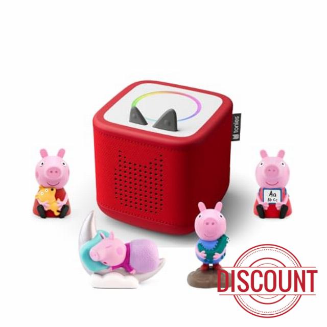 As well as the four Peppa Pig Tonies, this Toniebox 2 bundle also includes a Sunset Red Toniebox 2 and all charging equipment.