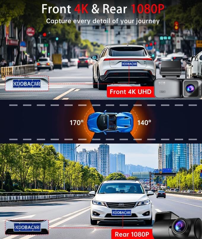 - Front and rear cameras in 4K quality Everything is recorded in crystal-clear 4K, so you can zoom in on any license plate, no matter how far away it is.