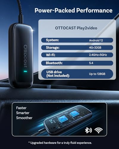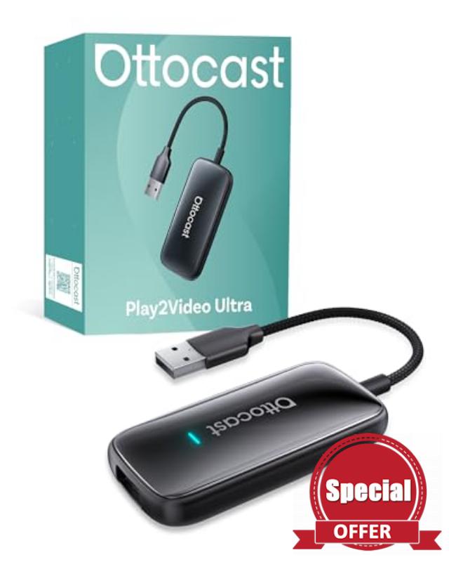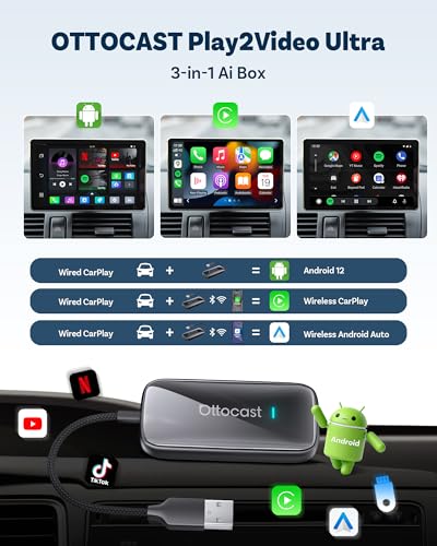 【OTTOCAST Play2Video Ultra 2025 Upgrade】 Premium wireless CarPlay adapter that instantly converts your factory-wired CarPlay into wireless CarPlay or Android Auto. Equipped with Bluetooth 5.4 + dual-band WiFi (2.4/5GHz) for smooth, stable streaming and faster response, even in tunnels or weak-signal areas.
