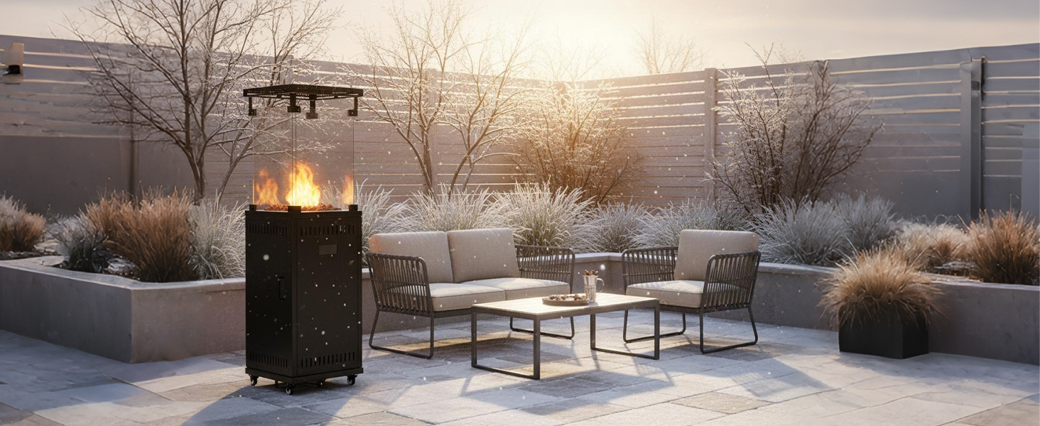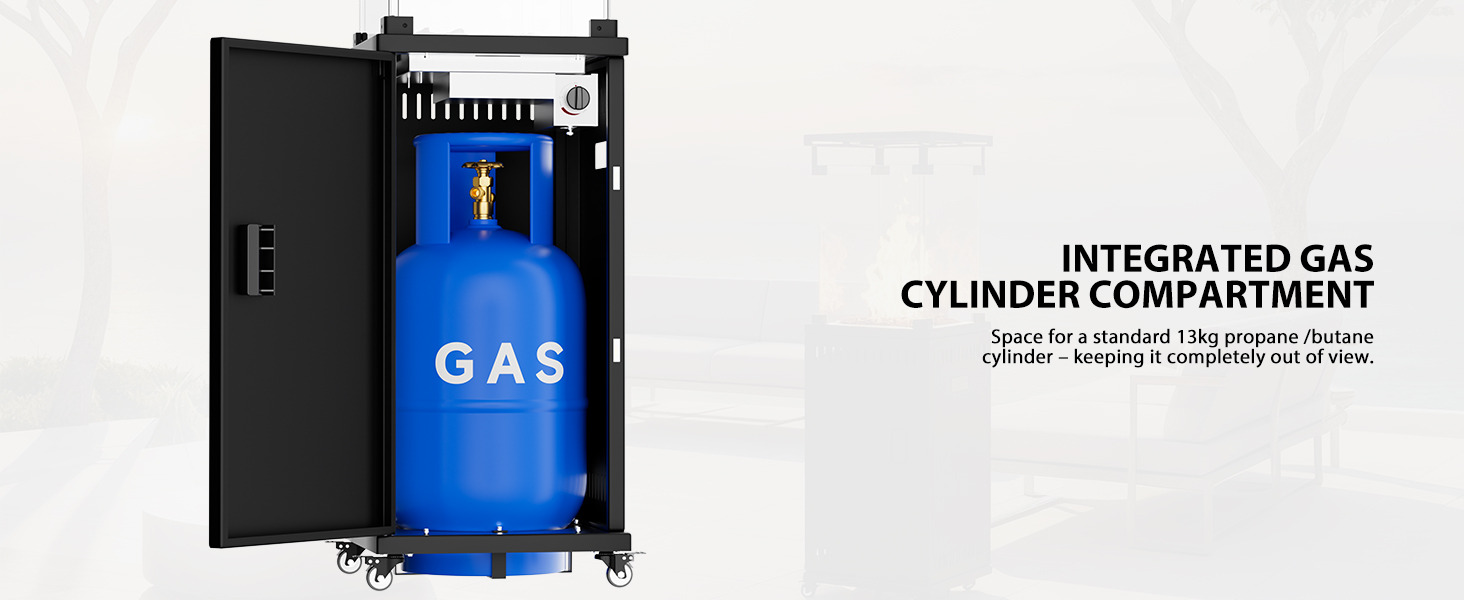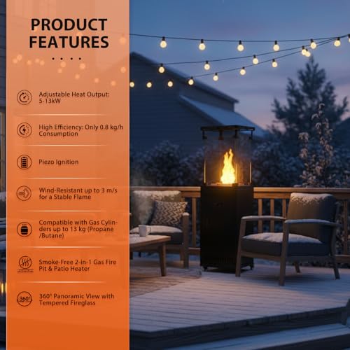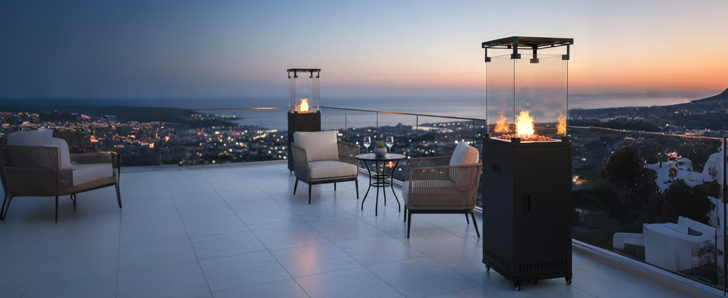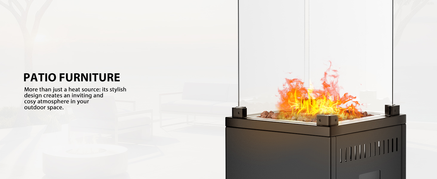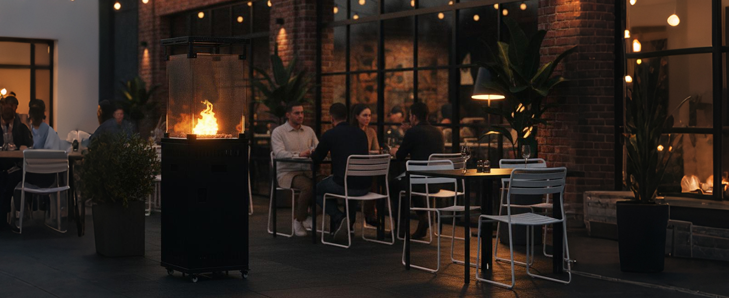 Quick Assembly & Ready To Use In Minutes: Your cosy evening is just moments away. We've designed the setup to be incredibly straightforward. Unpack, attach the wheels and windproof glass, and connect to a standard propane gas cylinder. It’s that easy to start enjoying instant, powerful heat