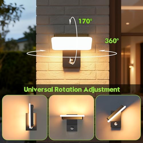 - 【Rotatable LED Panel】 This motion-sensitive PIR wall light features a rotatable LED panel that can be rotated 350° vertically and 270° horizontally. This allows you to easily find the ideal lighting angle. Whether it's a wall, door, or a specific area, you can freely adjust the light direction to achieve optimal light distribution for different lighting needs.