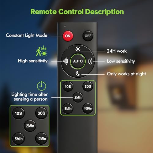 - 【Intelligent Motion Sensor】With the integrated, advanced PIR sensor, this wall light automatically detects human movement within a radius of 3 to 8 meters and intelligently turns the light on and off. Using the remote control, you can set the sensor to activate only at night or 24/7 – for comfortable and energy-efficient lighting at any time.