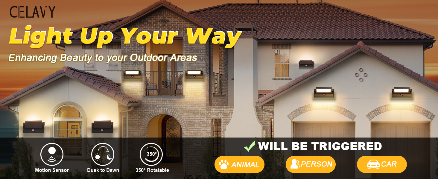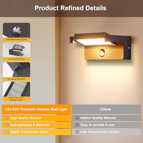 CELAVY Rotatable External Wall Light with Upgraded Motion Sensor