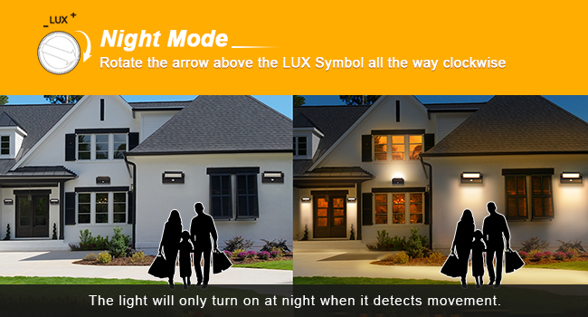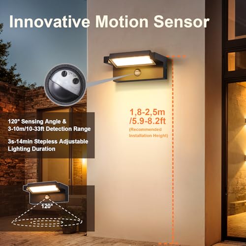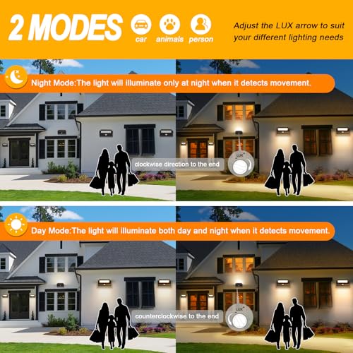 - 【Innovative Motion Sensor】: Unlike other outside lights with sensor, our outdoor sensor light features advanced sensor technology. You can not only customize the lighting duration from 3 seconds to 14 minutes but also switch between day and night modes. This makes our motion sensor light outdoor significantly more versatile, and suitable for a variety of applications.