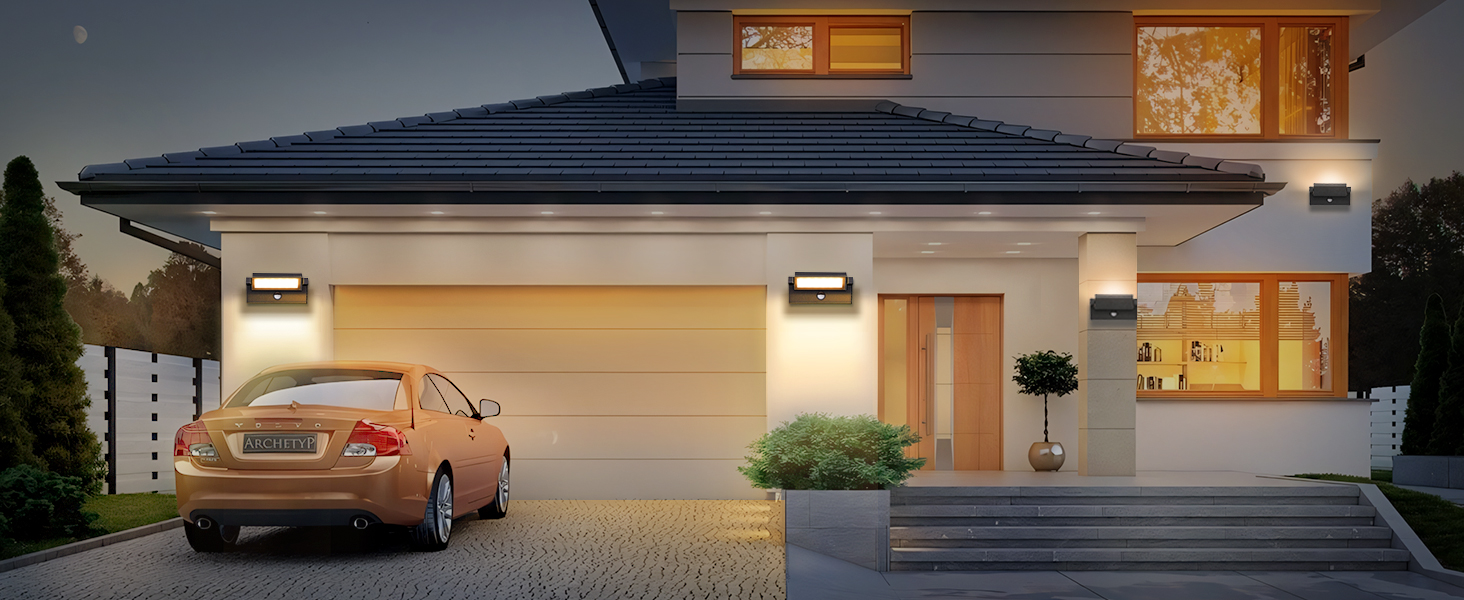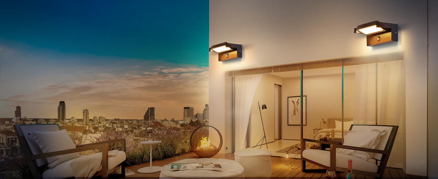 In day mode, the outdoor wall lighting is activated by motion both during the day and at night.