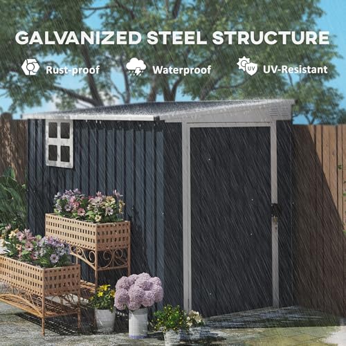 Outsunny 7.6 x 4ft Outdoor Garden Storage Shed, Metal Shed with Window, 2 Vents and Lockable Door for Garden, Patio, Dark Grey