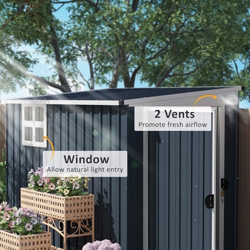 Ventilated & bright: Stay organised with this outdoor shed, designed with two ventilation vents for optimal airflow and a transparent window to flood the inside with natural light. Great for keeping your garden tools and supplies fresh and dry.
