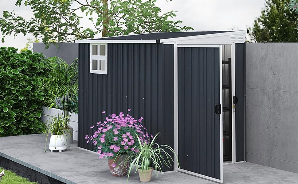 Robust construction: Crafted from UV-resistant, rust-proof galvanised steel, this outdoor storage shed is designed to withstand the elements. Enjoy long-lasting durability and protection from corrosion, keeping your shed looking great year after year.