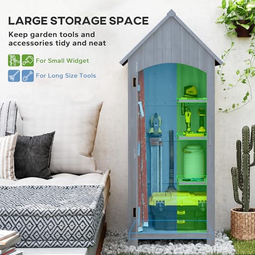 Outsunny Wooden Garden Storage Shed with 3 Shelves, Outdoor Tool Storage Cabinet with Tilt Roof and Lockable Door, 77.5 x 54.2 x 179.5 cm, Grey