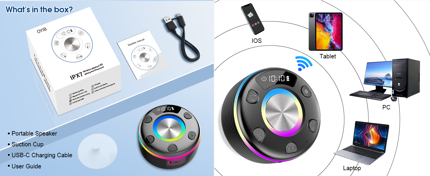 OYIB Bluetooth Shower Speaker, Portable Bluetooth Speaker