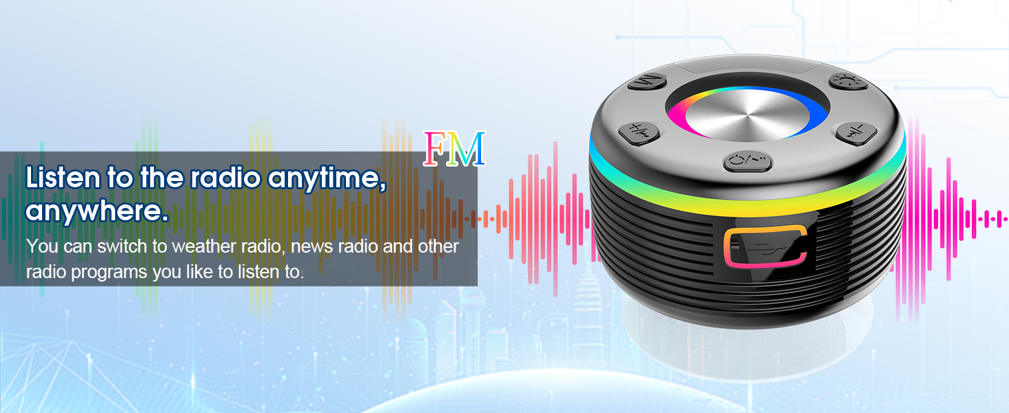 - RGB Lights and 360° Surround Sound: OYIB shower radio is equipped with a unique night theme LED RGB lights, and the light color can switch freely with the beat of the music. Create an amazing party atmosphere and enjoy a hot rock party! It has a built-in powerful speaker, achieving 360° enhanced stereo sound, unlocking high-quality music texture, allowing your spirit to sparkle, and meeting the requirements of friends gathering.