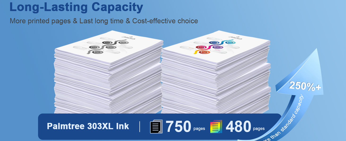 Maximized Efficiency, Reduced Costs: Delivering up to 750 pages per 303XL black and 480 pages per 303XL color cartridge (at 5% coverage), this high-capacity ink boosts your print volume by up to 250% compared to standard cartridges. Fewer replacements mean longer use, lower costs, and improved workflow efficiency