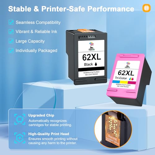 - Stable & Printer-Safe Performance:Palmtree 62XL cartridges use advanced chips and recycled OEM components, ensuring seamless compatibility without harming your printer. Rigorously tested for quality, they deliver reliable performance with less maintenance and fewer interruptions