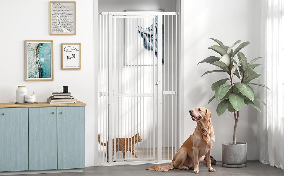 - Two-way opening: The double-swing safety gate design opens both ways, making it easy to pass through — even when your hands are full. The secure locking system ensures pets stay put, while adults can open it easily with one hand.