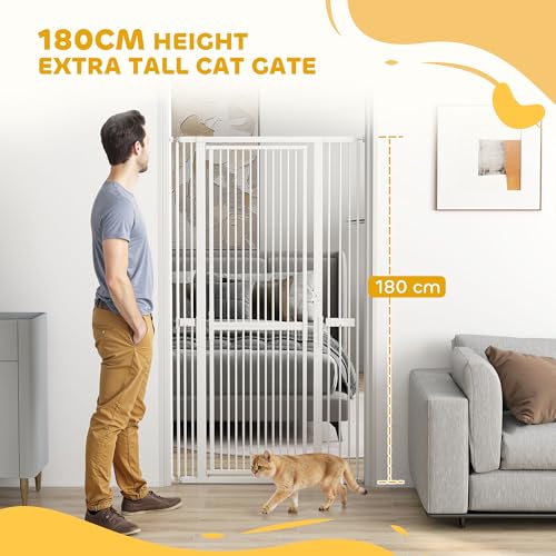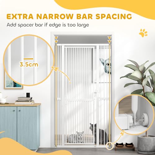 PawHut 180cm Extra Tall Pet Gate, 76-104cm Wide Adjustable Cat Gate with 3.5 cm Narrow Gap, Pressure Mounted No Drilling Steel Dog Gate for Doorways, Kitchen, Bedroom, White