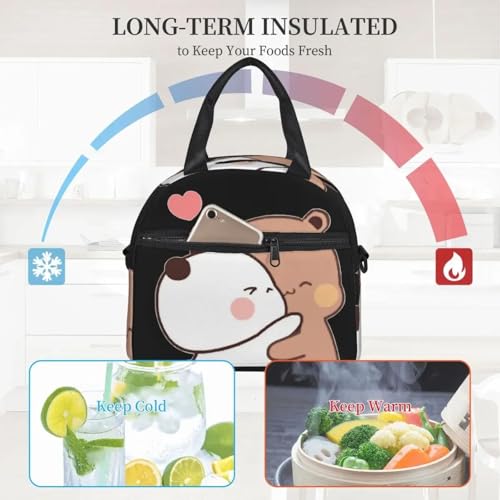 Peach and Goma Bubu Dudu Balloon Lunch Bags Insulated Bento Box Portable Lunch Tote Picnic Bags Thermal Bag for Woman School